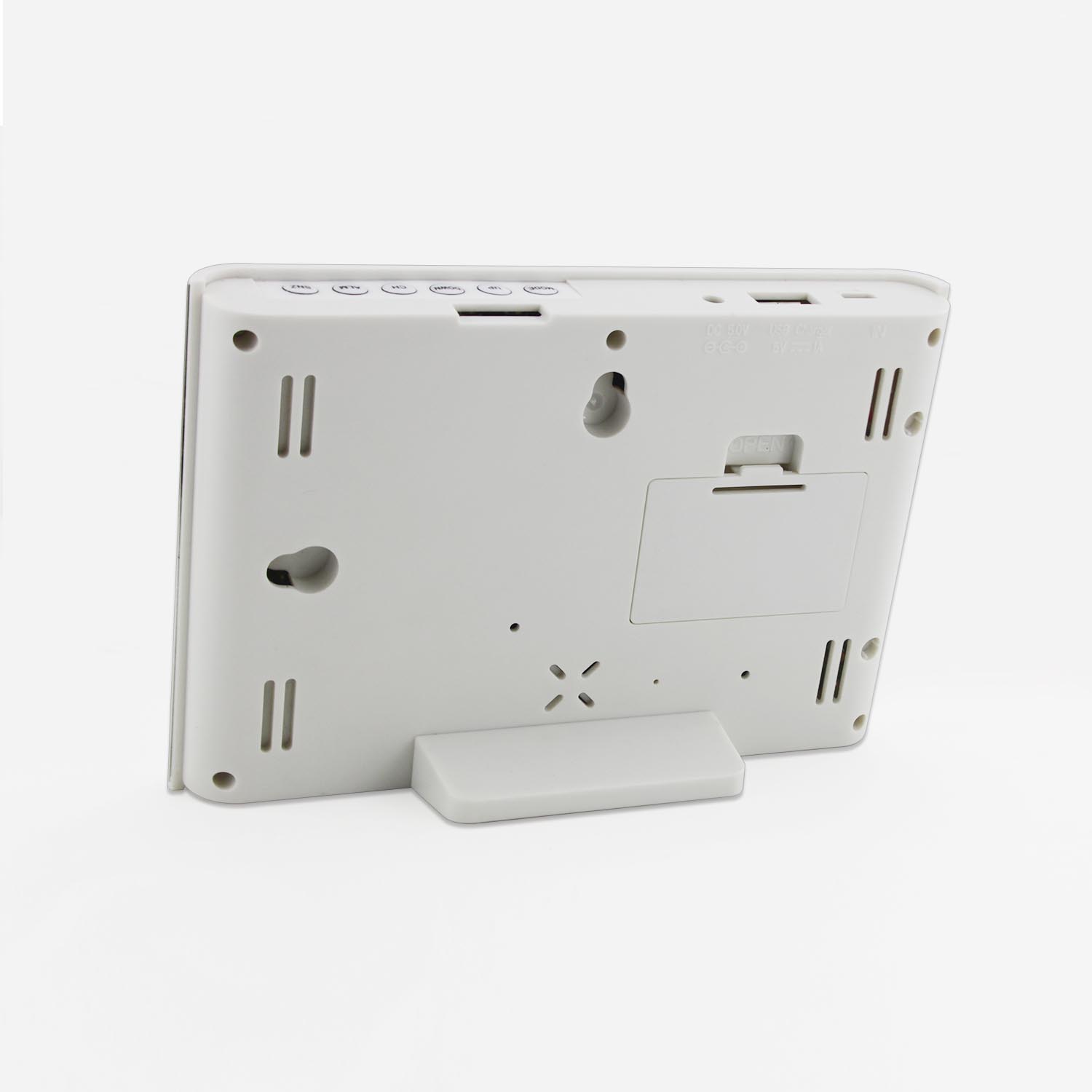 | 产品材质 | ABS+铝面 | 供电方式 | USB+DC5V / 室内主机: AAA*3 室外机: AAA*2 |
