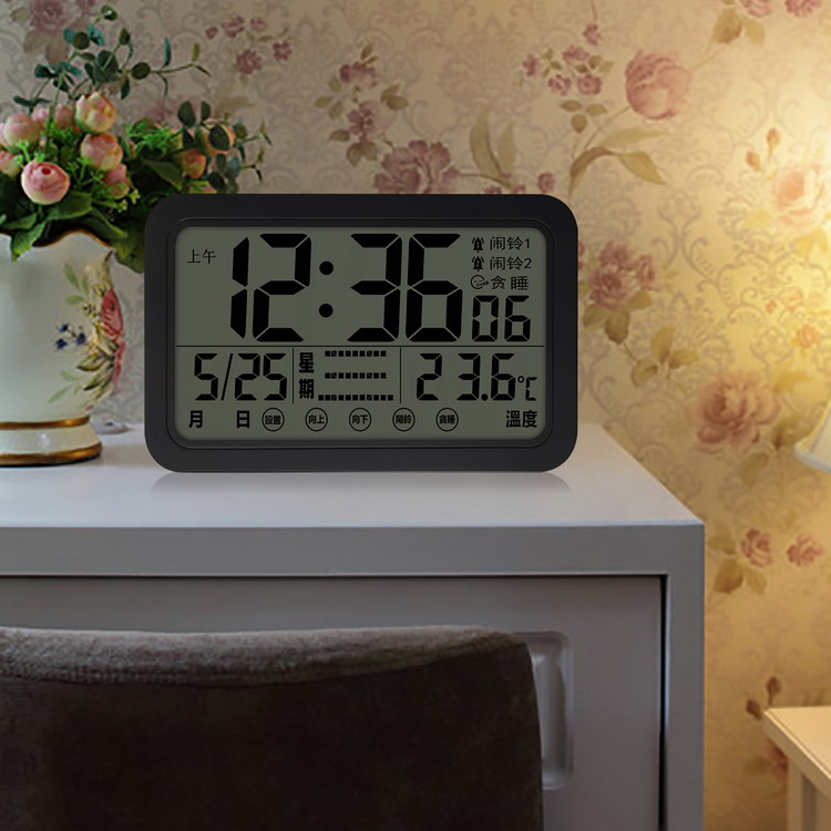 家用数字显示挂墙钟LCD数字显示台钟静音闹钟两用温度钟日历钟,休闲居家钟时尚LCD钟经典贪睡闹钟气温显示钟星期显示多功能台钟(大批量订货的买家,或者定制logo, 货期不一样,请于旺旺咨询)