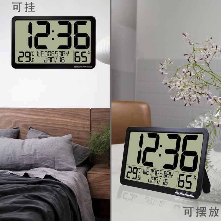 家用数字显示挂墙钟LCD数字显示台钟静音闹钟两用温度钟日历钟,休闲居家钟时尚LCD钟经典贪睡闹钟气温显示钟星期显示多功能台钟(大批量订货的买家,或者定制logo, 货期不一样,请于旺旺咨询)