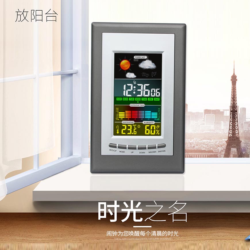钟表彩屏气象钟温湿度闹钟数字万年历钟表
