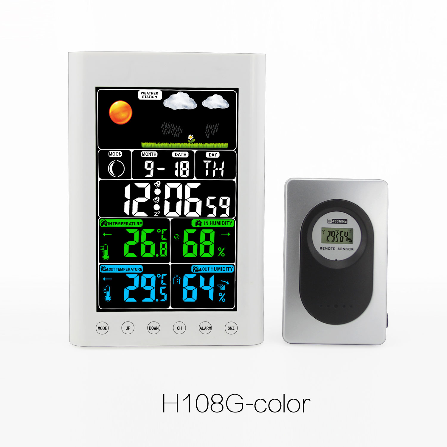无线多功能室内温湿度计创意彩屏天气预报双闹钟