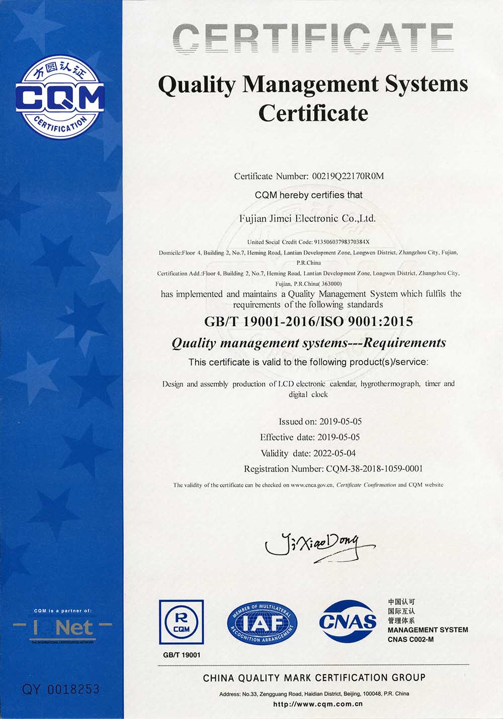 Telephone: +86-596-2172601/2104877 Fax: 0596-2172770 mailbox: sales@jimeiclock.cn